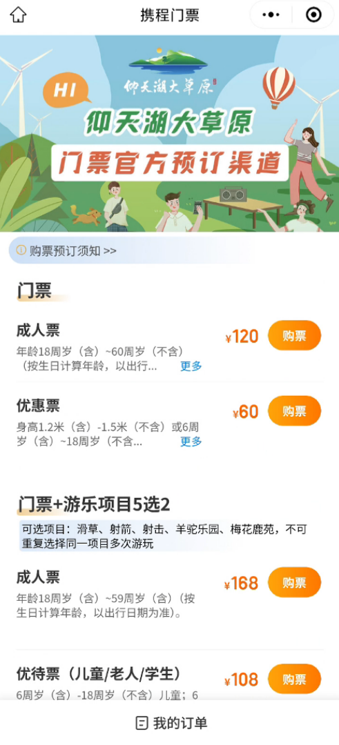 尊敬的游客,仰天湖大草原景区现已实行智慧管理,景区购票采用线上预约购票,为确保顺利入园,建议您按照以下步骤预约购票。线上购票成功即自动完成预约,无需再单独进行任何预约步骤,预约成功后持身份证直接刷卡进园即可,省时又省心。景区线下没有人工窗口售票,无法满足现场购票需求。因此,提前线上购票是您便捷入园的最佳选择。